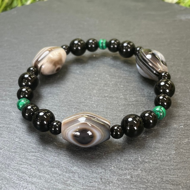 アイアゲート(天眼石) × ブラックオニキス × マラカイト ブレスレット 天然石