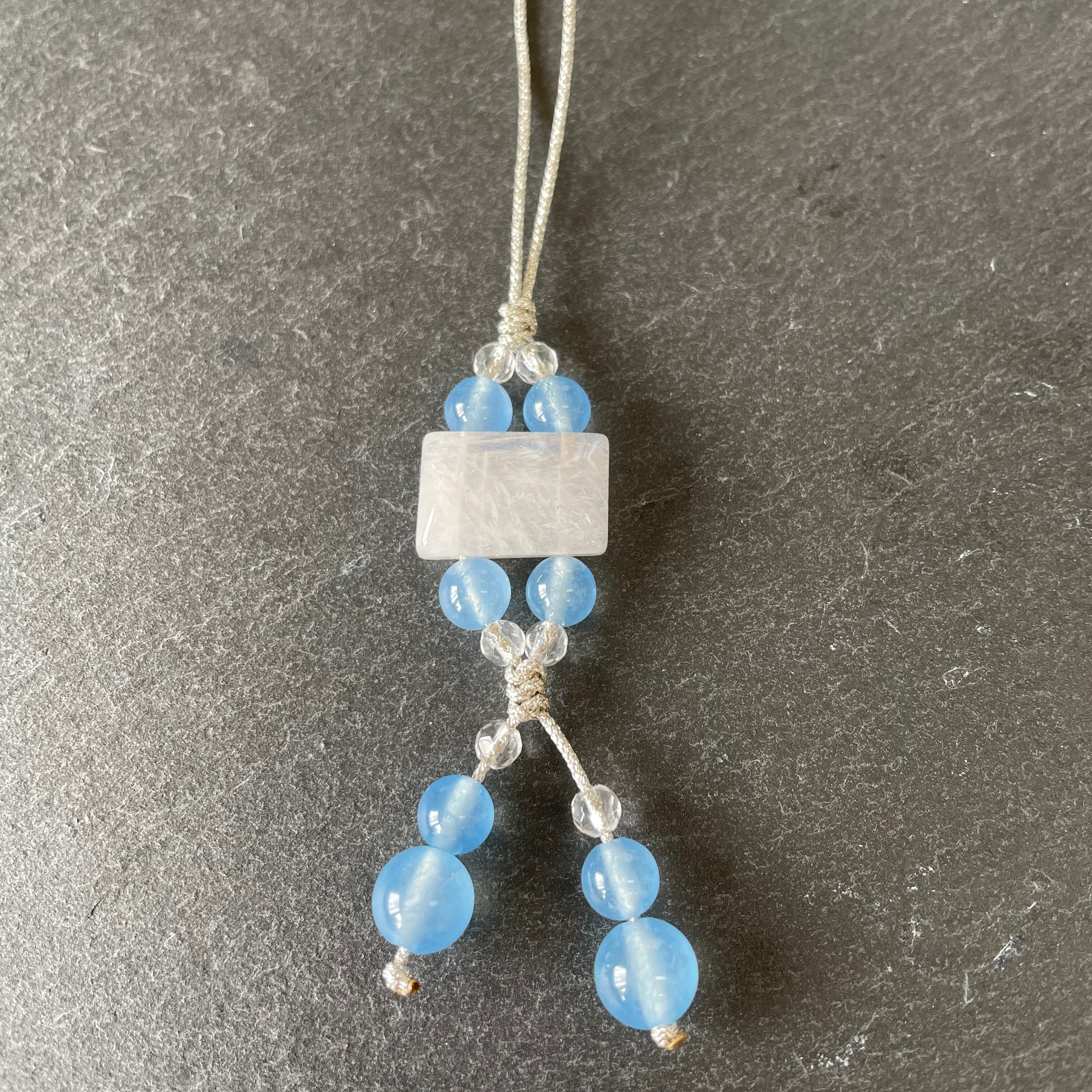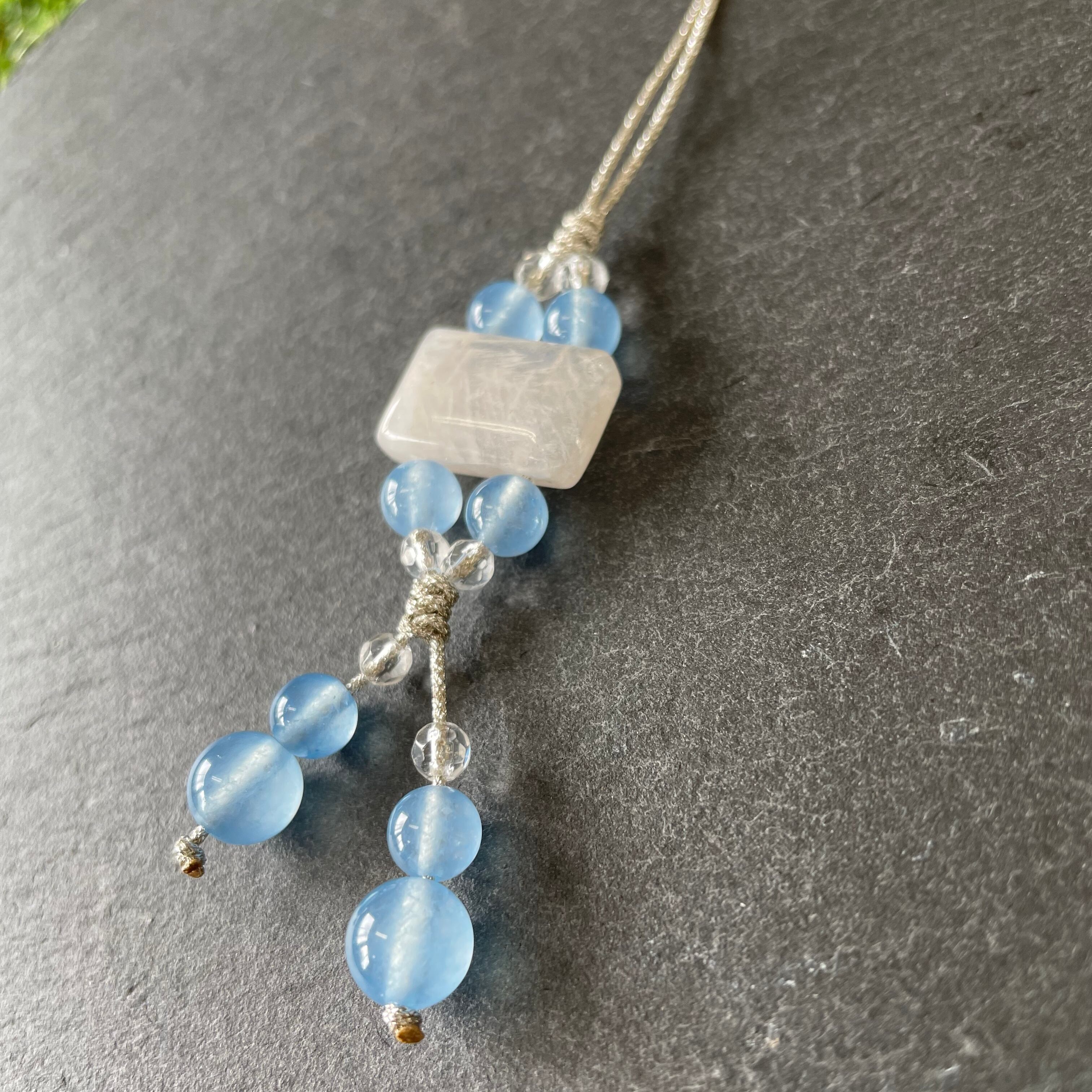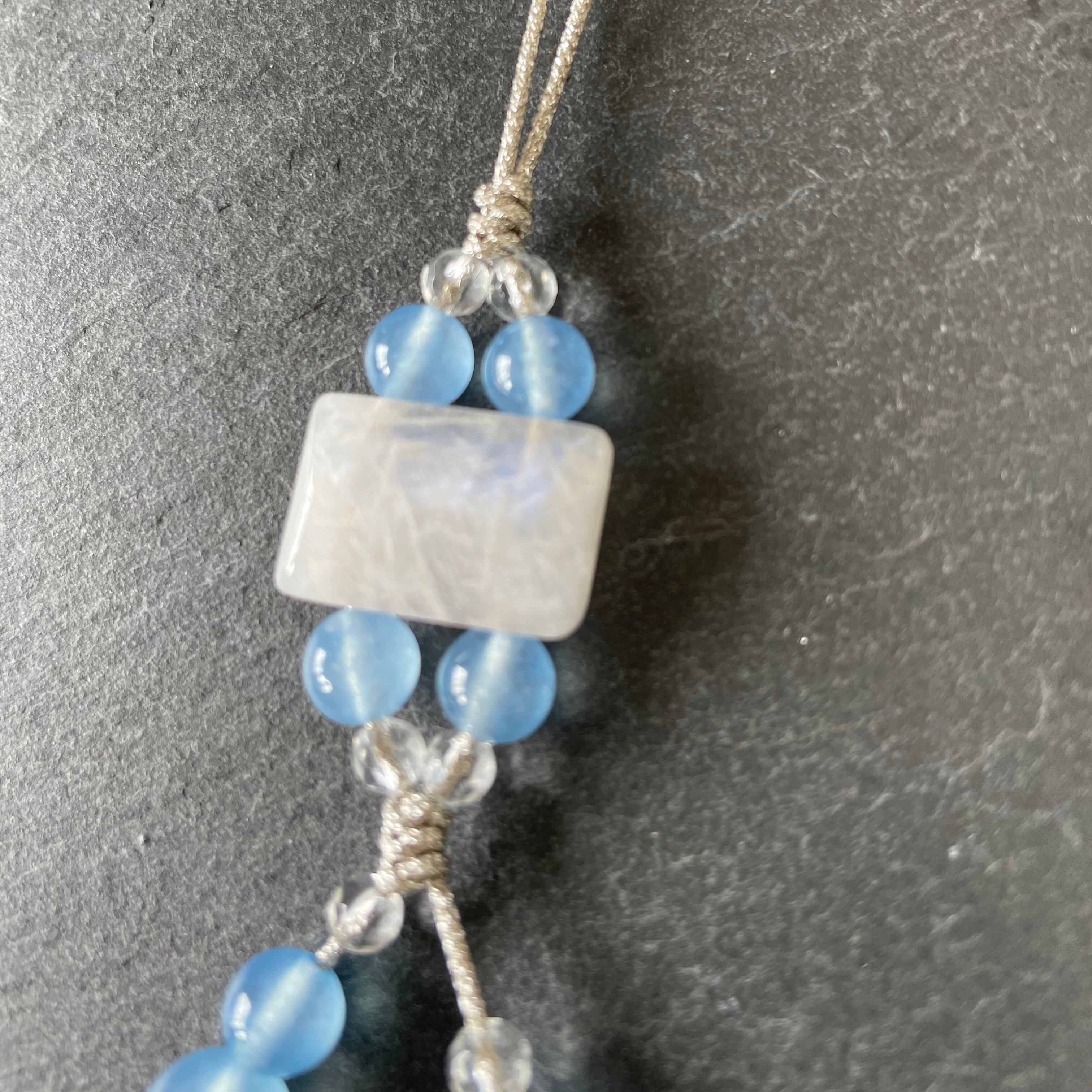 ●素材:ムーンストーン 17mm × 11mm シーブルーカルセドニー 8mm 6mm 水晶 カット 4mm アジアンコード使用