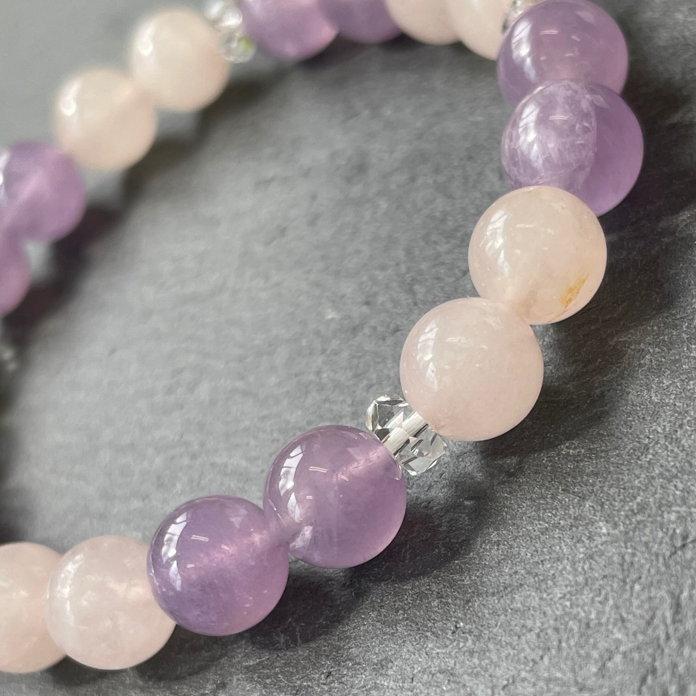 ●素材:ラベンダーアメジスト 8mm ローズクォーツ 8mm 水晶 ボタンカット オペロンゴム使用