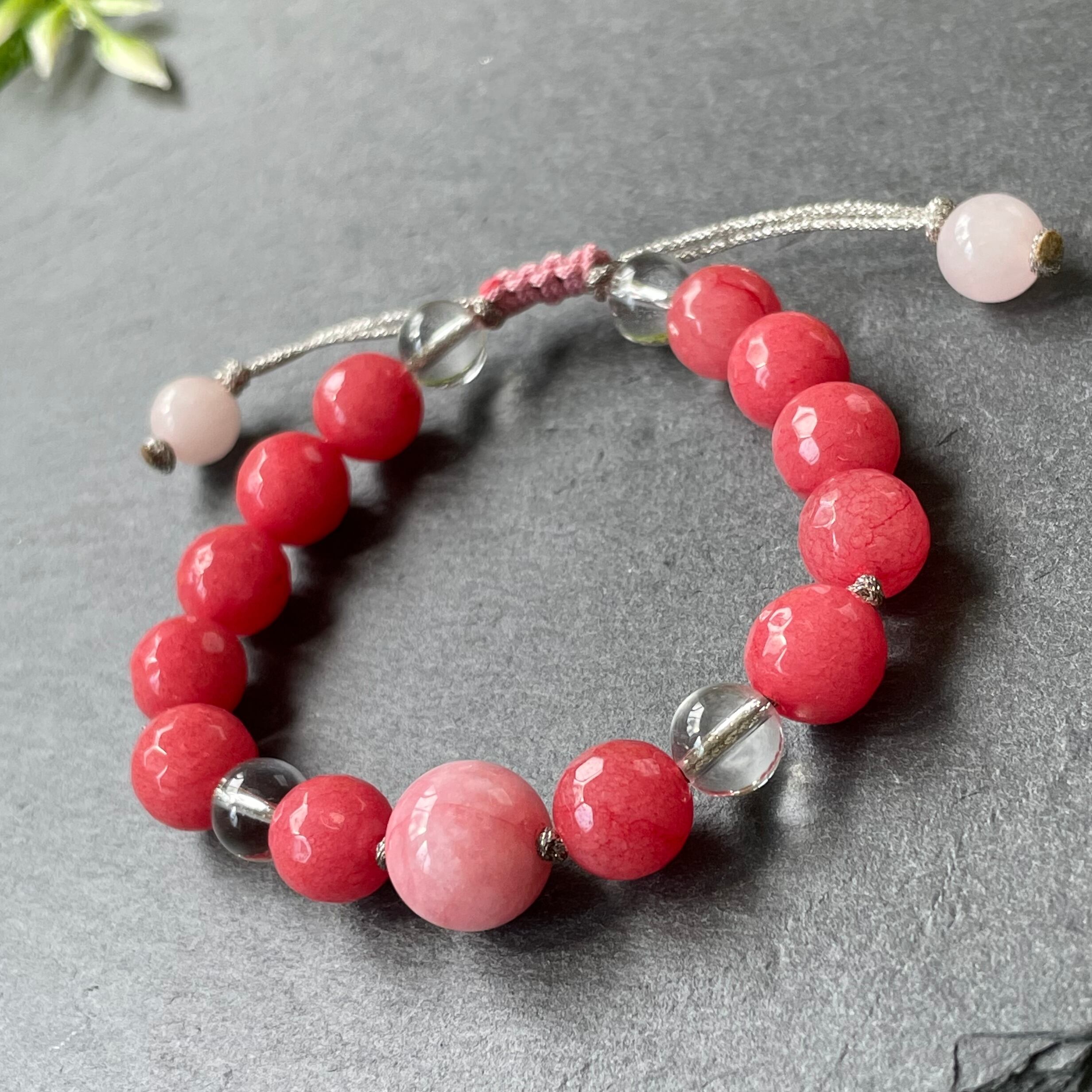 ●素材:ピンクジェイド 12mm カット 10mm 水晶 8mm ローズクォーツ 8mm アジアンコード使用