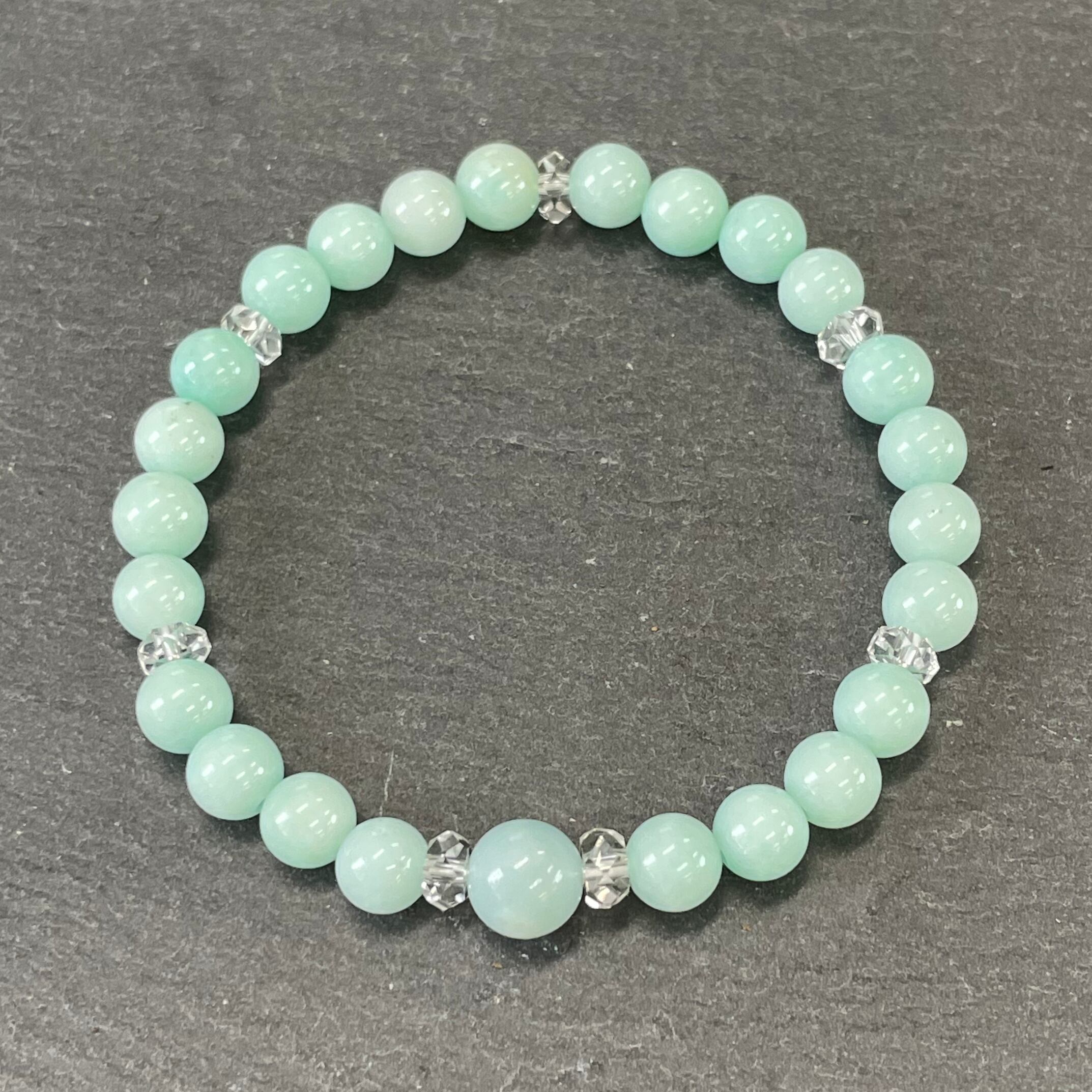 ●素材:アマゾナイト 8mm 6mm 水晶 ボタンカット オペロンゴム使用