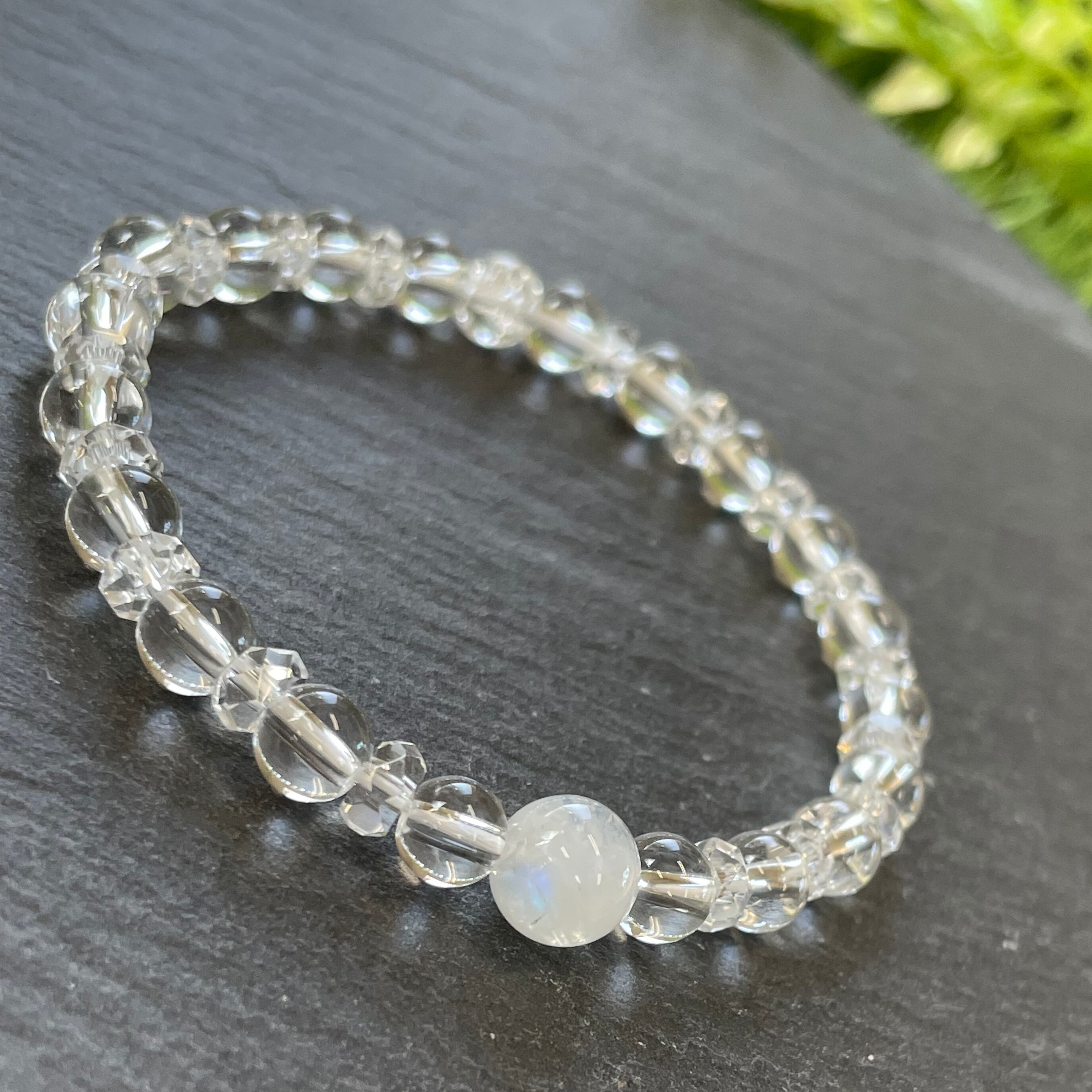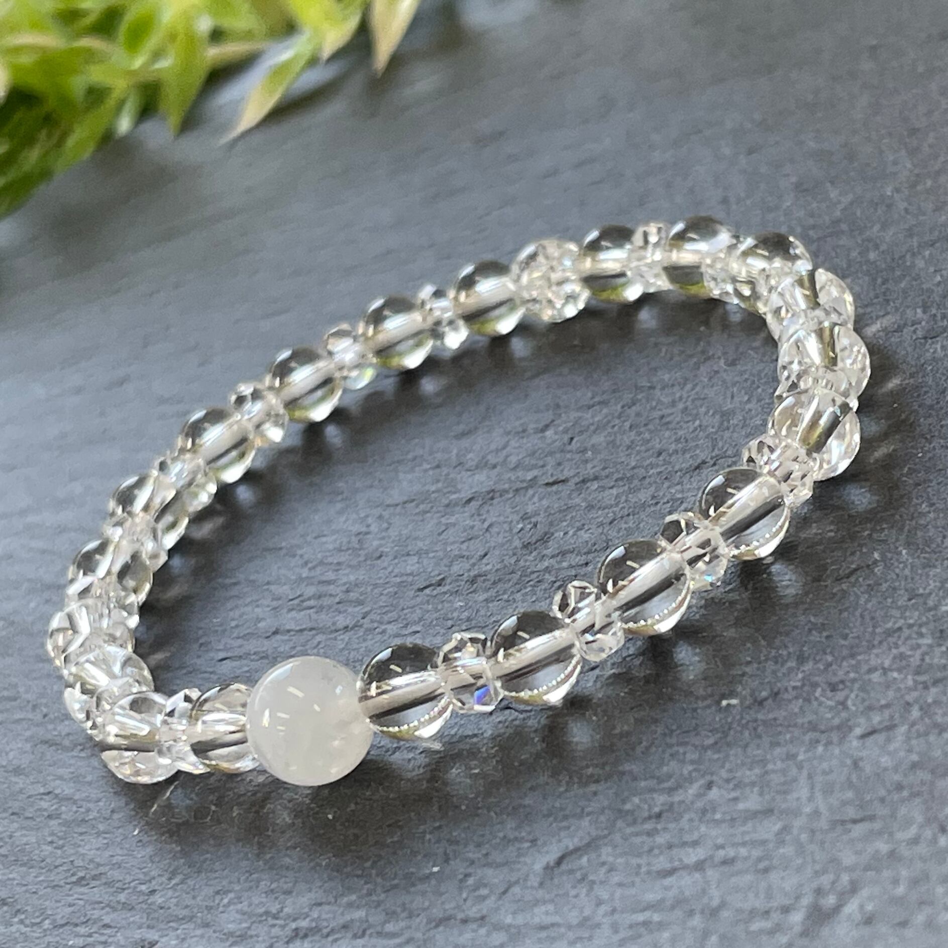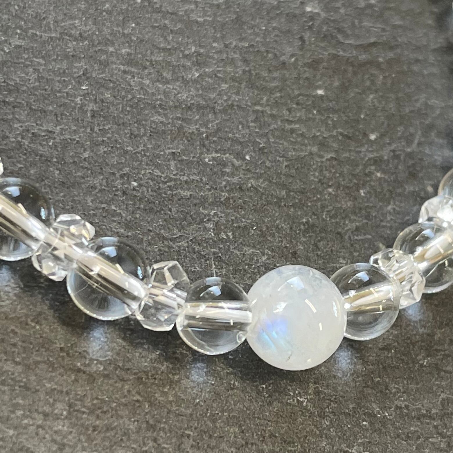 ●素材:ムーンストーン 丸玉 8mm クラック水晶 丸玉 6mm 水晶 丸玉 6mm ボタンカット オペロンゴム使用