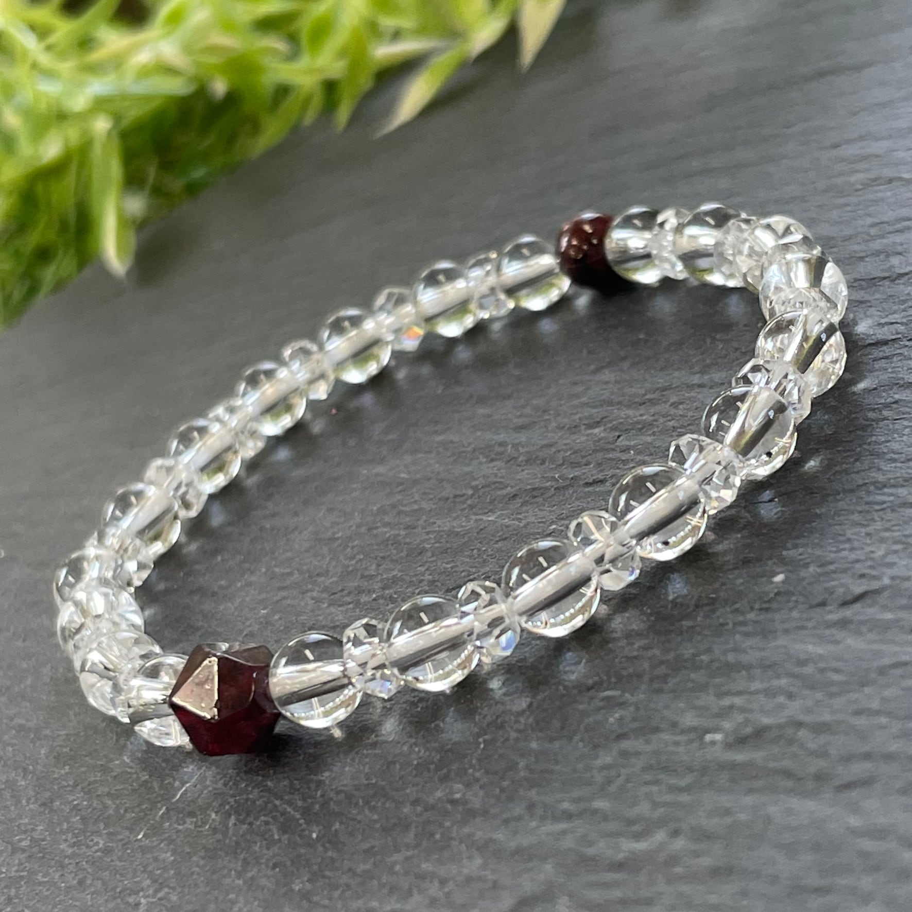 ●素材:ガーネット ファセットカット 8mm 丸玉 6mm 水晶 丸玉 6mm ボタンカット オペロンゴム使用