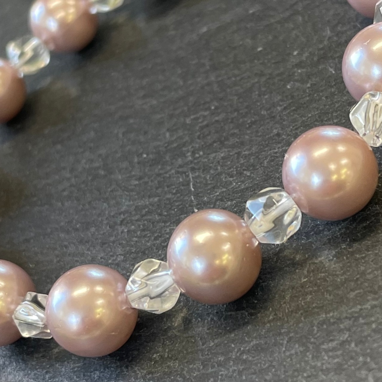 ●素材:人工パール 10mm 水晶 ファセットカット 6mm オペロンゴム使用