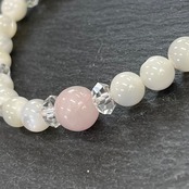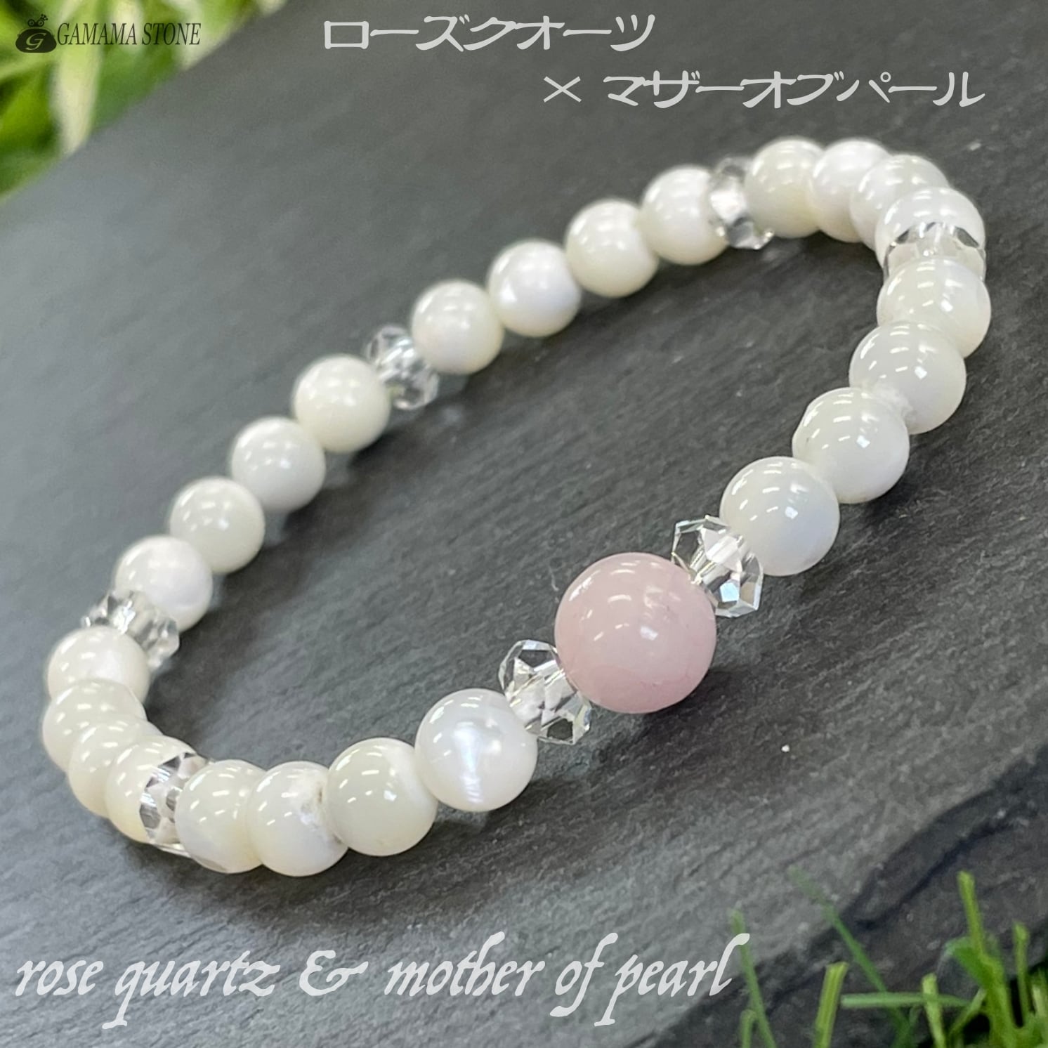 ●素材:ローズクォーツ 8mm マザーオブパール 6mm 水晶 ボタンカット オペロンゴム使用