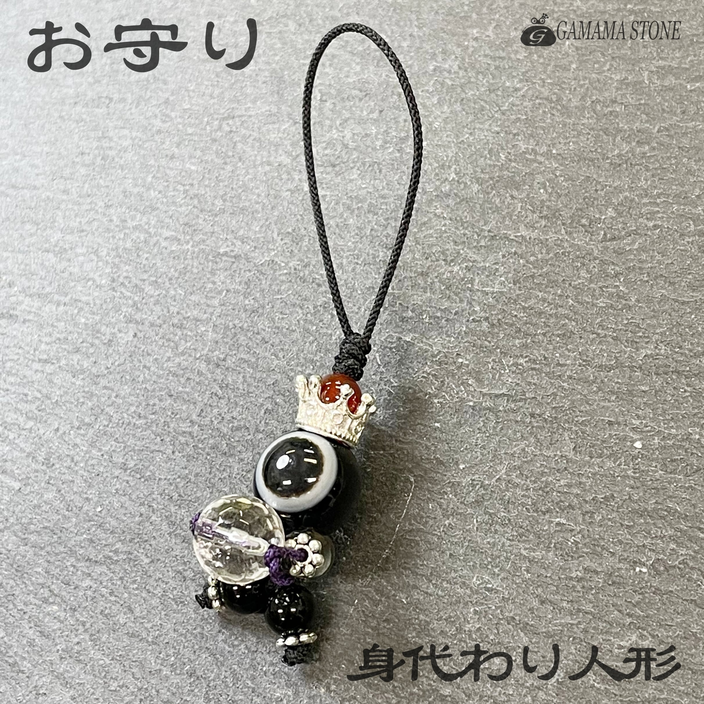 身代わり人形 ストラップ No.3 天然石