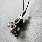 ●素材:アイアゲート(天眼石) 12.5mm 水晶 カット 9.5mm カーネリアン 6mm ブラックオニキス 6mm スモーキークォーツ 6mm アジアンコード使用