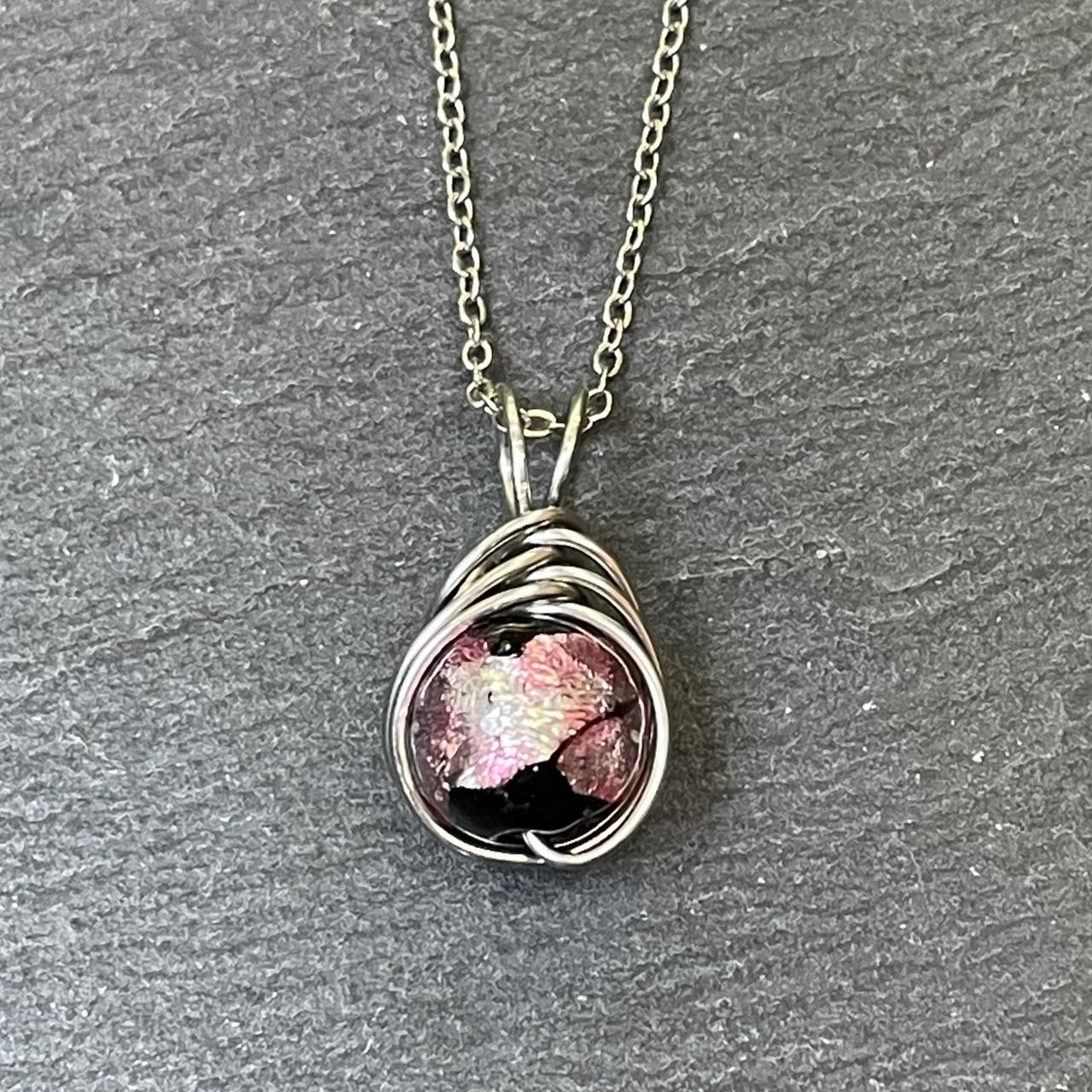 ホタルガラス 【ピンク】 丸玉 12mm ワイヤーペンダント
